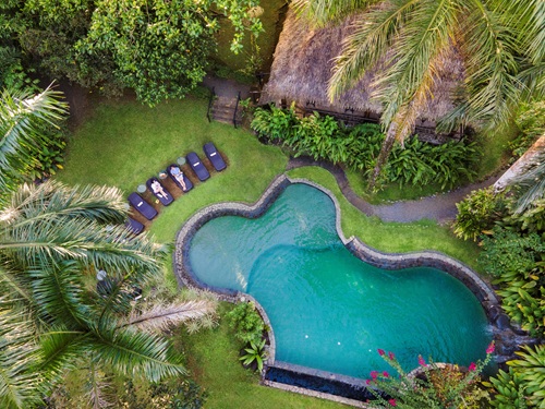 La propiedad cuenta con 7 hectáreas de bosque tropical. Allí se distribuyen 40 habitaciones construidas en palenques circulares basados en estructuras tradicionales precolombinas. Cada palenque alberga ocho habitaciones equipadas con aire acondicionado y terraza privada, integradas armónicamente al entorno natural.