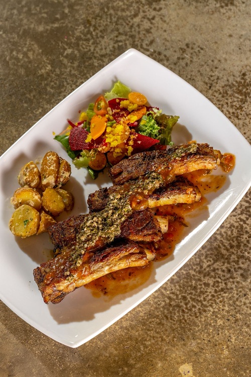 Entre los platos fuertes desarrollaron cortes como el Coffee & Cacao Rubbed Beef Tenderloin, las Slow Roasted Pork Ribs y la Pesca del Día en dos preparaciones.